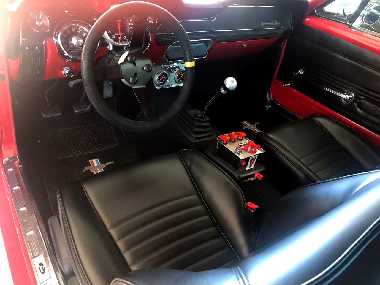 O INTERIOR DE LUXO DE 1967 INCLUÍA CONCHAS DE ENCOSTO DO BANCO EM AÇO INOXIDÁVEL, SEMELHANTES ÀS DO THUNDERBIRD.ELAS FORAM DESCARTADAS NO FINAL DO ANO MODELO DE 1967 E NÃO FORAM INCLUÍDAS NO INTERIOR DE 1968 APARADO COM MADEIRA.O VOLANTE DE LUXO,QUE HAVIA SIDO INCLUÍDO NO INTERIOR DE LUXO PARA 1965-1966, TORNOU-SE OPCIONAL, E TAMBÉM PODERIA SER ENCOMENDADO COM O INTERIOR PADRÃO.OS MODELOS DE 1968 QUE FORAM PRODUZIDOS A PARTIR DE JANEIRO DE 1968 TAMBÉM FORAM O PRIMEIRO ANO DO MODELO A INCORPORAR CORREIAS DE OMBRO E COLO DE TRÊS PONTOS (QUE ANTES ERAM OPCIONAIS NOS MODELOS DE 1967 A 1968), EM OPOSIÇÃO AOS CINTOS DE SEGURANÇA PADRÃO.A OPÇÃO DE AR-CONDICIONADO FOI TOTALMENTE INTEGRADA AO PAINEL, OS ALTO-FALANTES E O APARELHO DE SOM FORAM ATUALIZADOS, E OS CONSOLES CENTRAIS E SUSPENSOS EXCLUSIVOS ERAM OPÇÕES.O MODELO FASTBACK OFERECIA A OPÇÃO DE UM ASSENTO REBATÍVEL TRASEIRO E O CONVERSÍVEL ESTAVA DISPONÍVEL COM JANELAS DOBRÁVEIS.FOI O RALLY-PAC, JÁ QUE O NOVO PAINEL DE INSTRUMENTOS TINHA PROVISÕES PARA UM TACÔMETRO E RELÓGIO OPCIONAIS.SEU TAMANHO E FORMATO TAMBÉM IMPEDIRAM A INSTALAÇÃO DO ACESSÓRIO NO TOPO DA COLUNA DE DIREÇÃO.O GRUPO DE CONVENIÊNCIA COM QUATRO LUZES DE ADVERTÊNCIA PARA COMBUSTÍVEL BAIXO, LEMBRETE DE CINTO DE SEGURANÇA, FREIO DE ESTACIONAMENTO NÃO LIBERADO E PORTA ENTREABERTA FORAM ADICIONADOS AO PAINEL DE INSTRUMENTOS OU, SE UM ENCOMENDOU O CONSOLE OPCIONAL EA/C, AS LUZES FORAM MONTADAS NO CONSOLE.