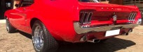 O ANO MODELO DE 1967 DO MUSTANG FOI O PRIMEIRO REDESENHO DO MODELO ORIGINAL.OS PROJETISTAS DA FORD COMEÇARAM A ELABORAR UMA VERSÃO MAIOR, MESMO QUANDO O ORIGINAL ESTAVA ALCANÇANDO SUCESSO NAS VENDAS.A PRINCIPAL CARACTERÍSTICA MECÂNICA FOI PERMITIR A INSTALAÇÃO DE UM,MOTOR V8 DE BLOCO GRANDE.O TAMANHO TOTAL, INTERIOR E ESPAÇO DE CARGA FORAM AUMENTADOS.AS MUDANÇAS DE ACABAMENTO EXTERNAS INCLUÍRAM LANTERNAS TRASEIRAS CÔNCAVAS, ESCORA LATERAL, ESPELHOS RETROVISORES QUADRADOS E MUDANÇAS USUAIS DE RODAS E CAPAS DE GASOLINA.A OPÇÃO 289 DE ALTO DESEMPENHO FOI COLOCADA ATRÁS DO MAIS NOVO MOTOR DE 340 HP (250 KW; 340 CV) 390 PÉS CÚBICOS (6.4 L)DO,FORD THUNDERBIRD, QUE FOI EQUIPADO COM UM CARBURADOR DE QUATRO CILINDROS.DURANTE MEADOS DO ANO DE 1968, O,CARRO DE CORRIDA,PARA A RUA PODIA SER ENCOMENDADO COM O MOTOR OPCIONAL;COBRA JET,DE,428 PÉS CÚBICOS (7,0 L)QUE FOI OFICIALMENTE AVALIADO EM 335 CV (250 KW; 340 CV).O INTERIOR DE LUXO DE 1967 FOI REVISTO,RETIRANDO O MOTIVO DE CAVALO EM RELEVO NOS ENCOSTOS DOS BANCOS (A FONTE DO APELIDO "PONY INTERIOR") EM FAVOR DE UM NOVO PACOTE INTERIOR DELUXE, QUE INCLUÍA OPÇÕES DE CORES ESPECIAIS, ALUMÍNIO ESCOVADO ) OU GUARNIÇÃO DO TABLIER, BOTÕES DO ASSENTO E PAINÉIS ESPECIAIS DAS PORTAS.O TETO RÍGIDO TAMBÉM INCLUÍA PAINÉIS DE ACABAMENTO ESTOFADOS.