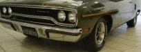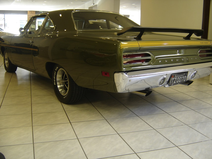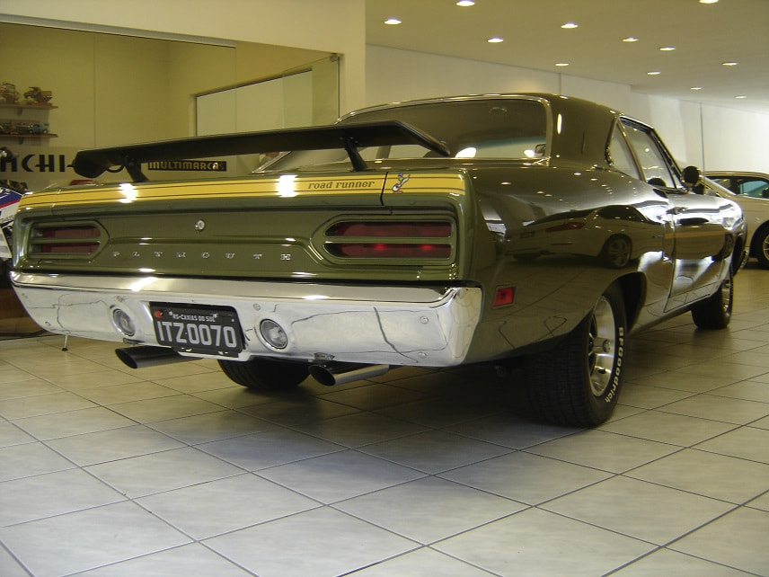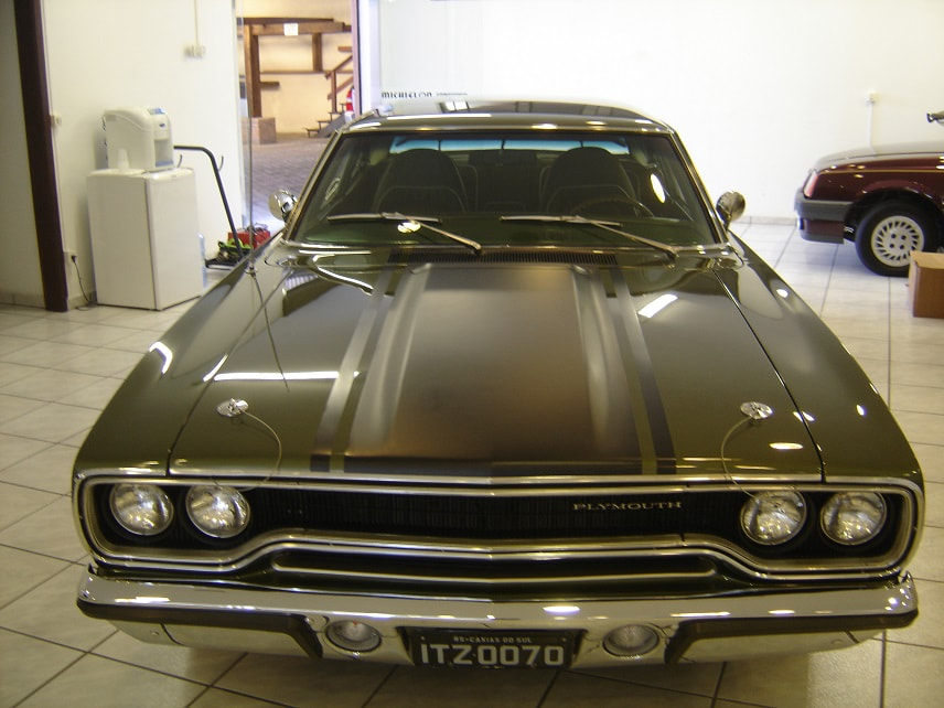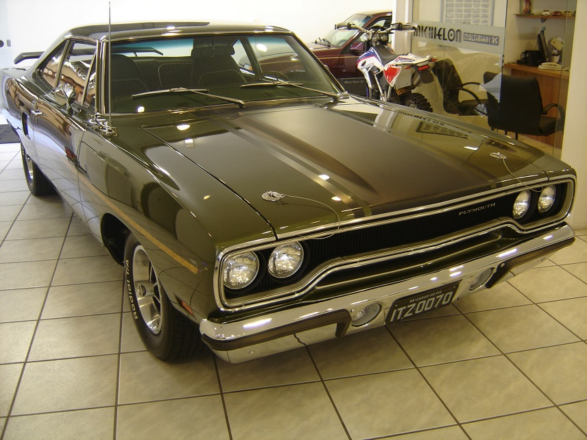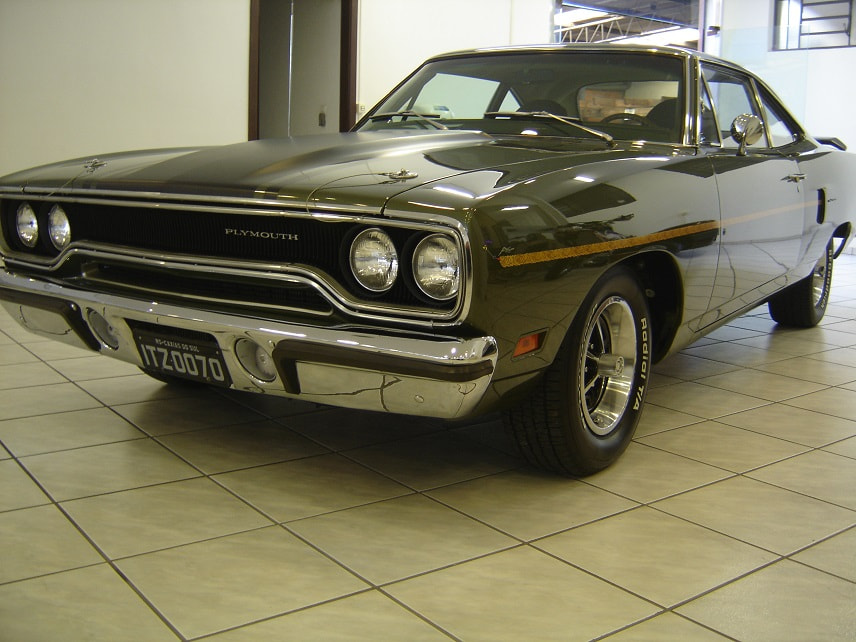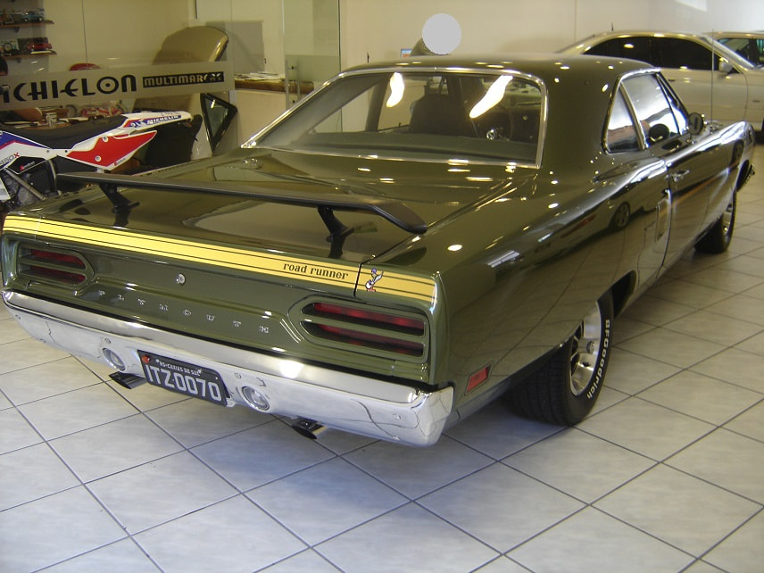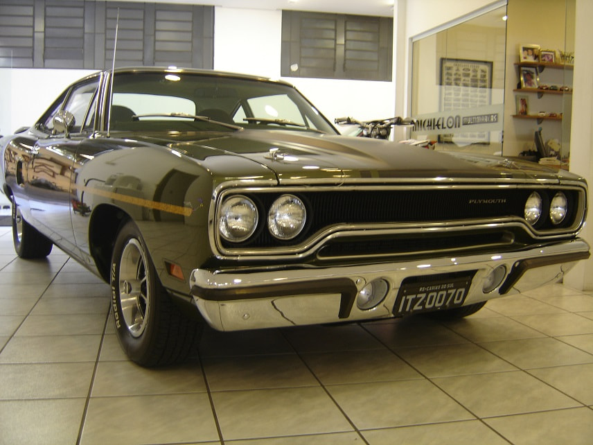 NESSE CASO ANO MODELO É 1970, QUE TROUXE NOVOS OLHARES FRONTAIS E TRASEIROS PARA O CORPO BÁSICO DE 1968, E SERIA OUTRO SUCESSO.AS ATUALIZAÇÕES INCLUÍAM UMA NOVA GRADE, UM BANCO DE PANO E VINIL, CAPÔ, PÁRA-LAMAS DIANTEIROS, PAINÉIS DE UM QUARTO, FREIOS A DISCO KELSEY-HAYES DE PISTÃO ÚNICO (MELHORADOS DO PEQUENO ROTOR BENDIX 4 DE 68 A 69), E ATÉ MESMO COLHERES NÃO FUNCIONAIS NOS QUARTOS TRASEIROS.O DESIGN E A FUNCIONALIDADE DA OPÇÃO AIR GRABBER FORAM ALTERADOS.UM INTERRUPTOR ABAIXO DO PAINEL ACIONOU UM SERVO DE VÁCUO PARA LEVANTAR LENTAMENTE A CONCHA VIRADA PARA FRENTE, EXPONDO DENTES SEMELHANTES A TUBARÕES DE AMBOS OS LADOS.AS CORES "HIGH IMPACT", COM NOMES COMO IN-VIOLET, MOULIN ROUGE E VITAMINA C, ERAM OPÇÕES DISPONÍVEIS PARA AQUELE ANO.A LINHA DE MOTORES PERMANECEU INALTERADA, APESAR DE UM MANUAL DE TRÊS VELOCIDADES DE SERVIÇO PESADO SE TORNAR A TRANSMISSÃO PADRÃO, RELEGANDO AS QUATRO VELOCIDADES À LISTA DE OPÇÕES JUNTO COM O TORQUEFLITE AUTOMÁTICO.ESTE FOI O SEGUNDO E ÚLTIMO ANO DO CONVERSÍVEL ROAD RUNNER, COM APENAS 834 FEITOS.OS NOVOS ASSENTOS COM ENCOSTO ALTO COMPARTILHAVAM OUTROS PRODUTOS DA CHRYSLER QUE CONTINHAM ENCOSTOS DE CABEÇA EMBUTIDOS.
